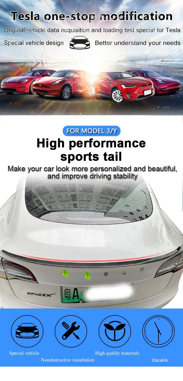 【Custom Fit】Xyzplus New Car Trunk Wing Spoiler fits for Tesla Model 3 & Y 2017 2018 2019 2020 2021 2022 2023.