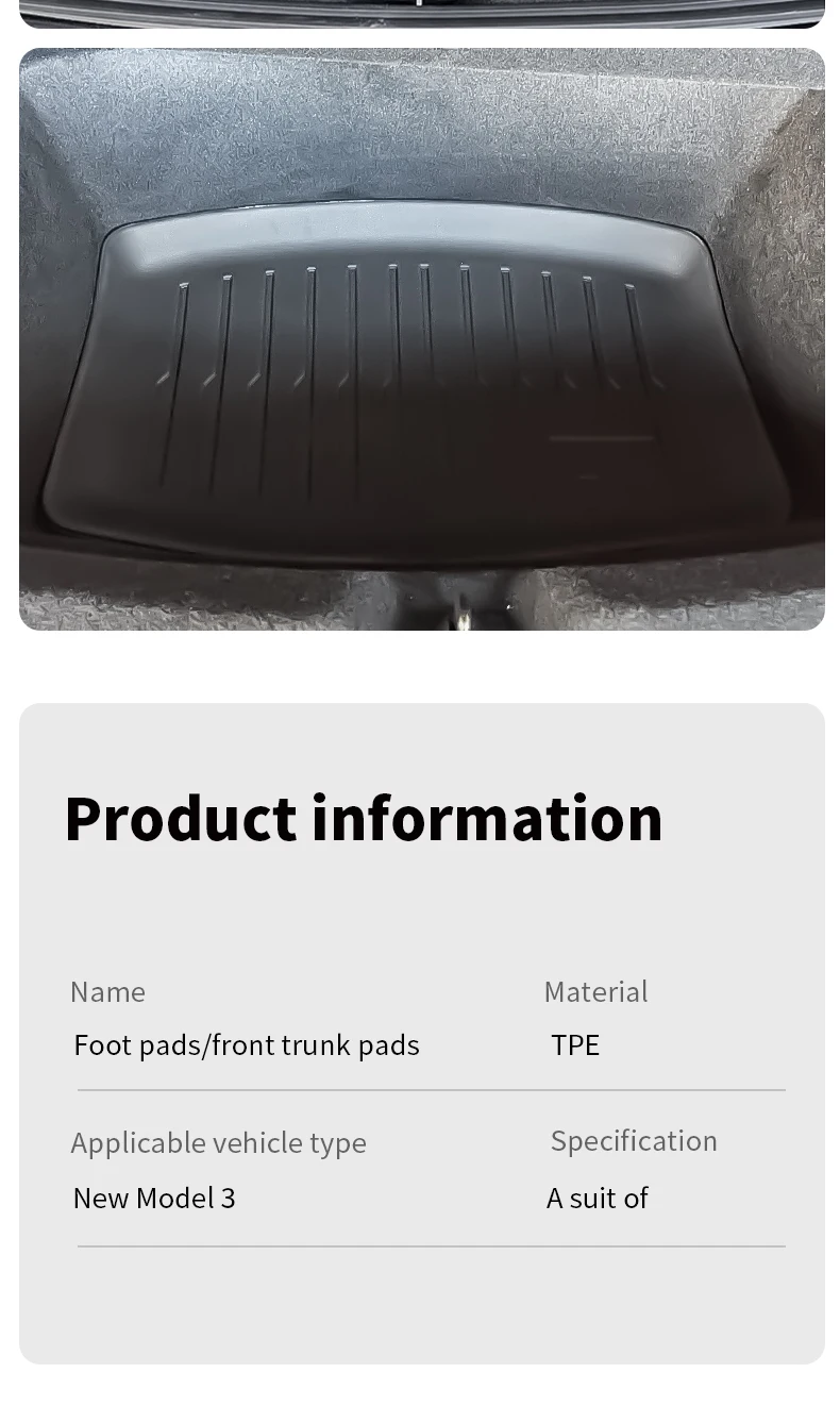 For tesla model 3 2024 foot mat and front rear trunk mat