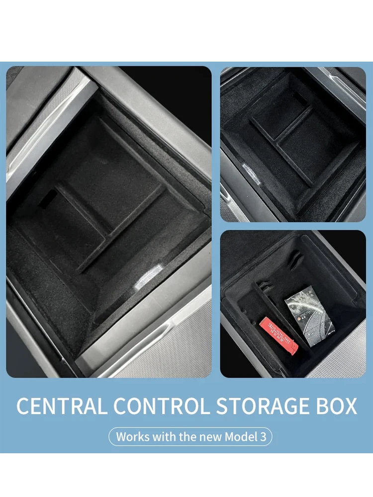 For Tesla Model 3 2024 HIghland Central Armrest Storage Box Organizer Center Console Flocking ABS Tray Organizer