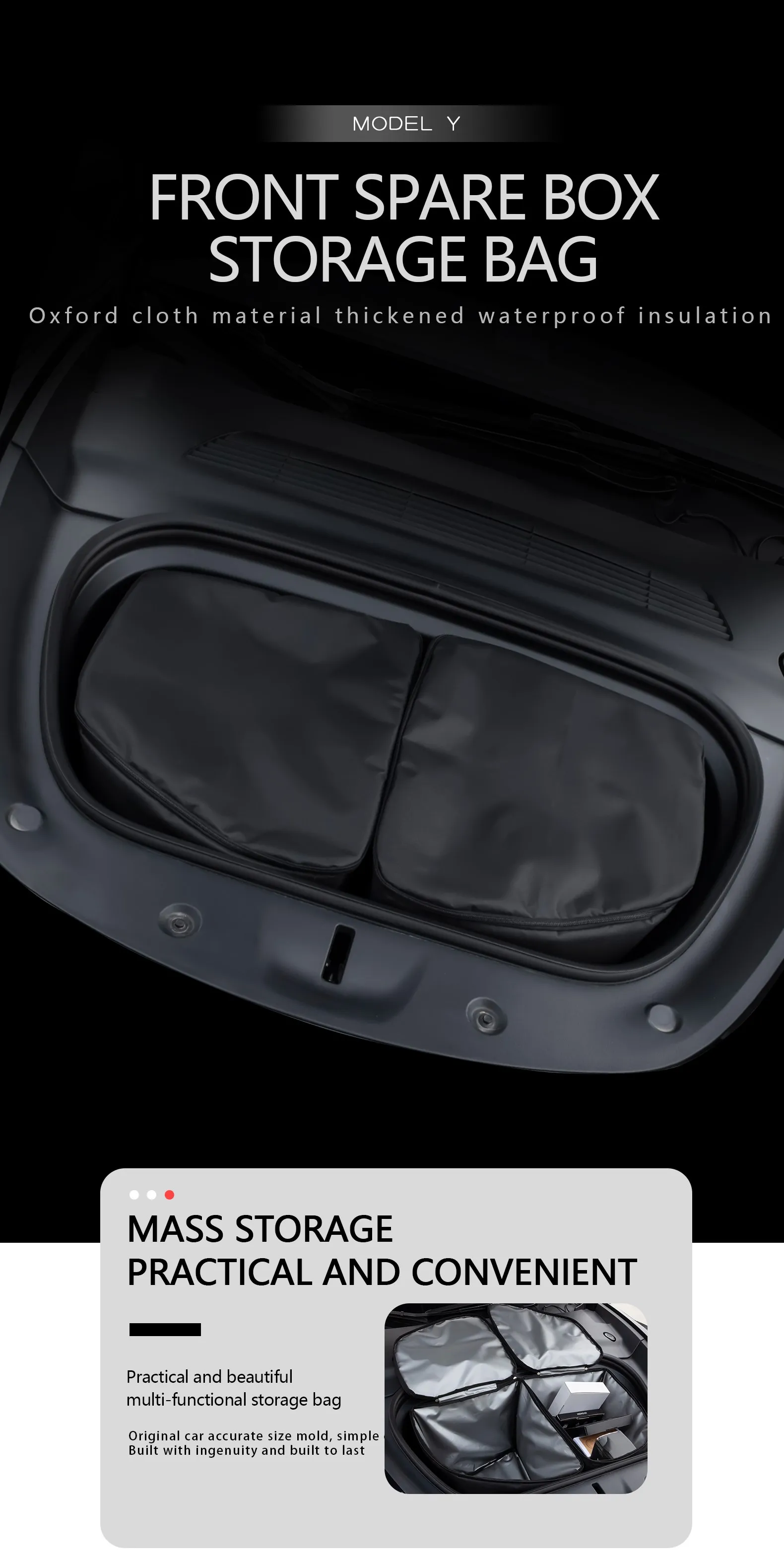 For Tesla Model Y 2017-2023 Front Trunk Storage Bag Auto Interior Accessories Oxford Cloth Wear-resistant Portable Organizer Bag
