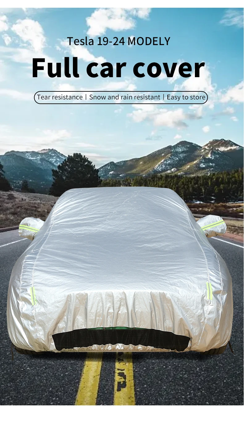 For Tesla Modle 3 Model Y Full Car Covers Outdoor Uv Sun Protection Dust Rain Snow Protective Car Cover Auto Black Cover