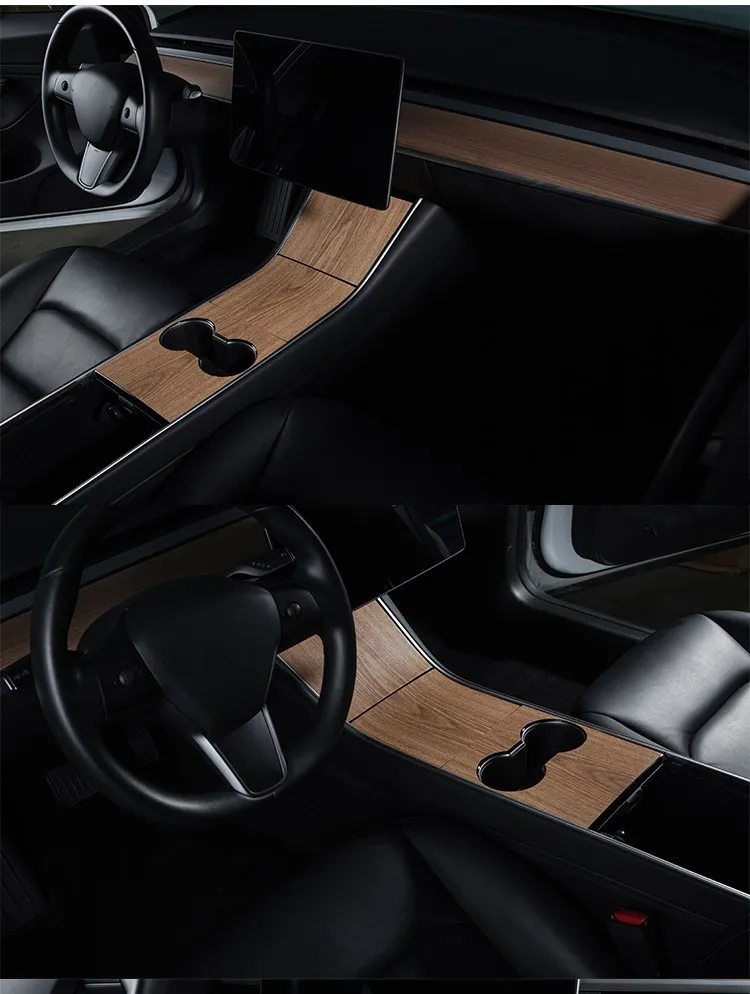 Xyzplus Model3 Car Center Console Wrap Sticker For Tesla Model 3 Y Wood Console Grain Accessories For Tesla Model Three accessory