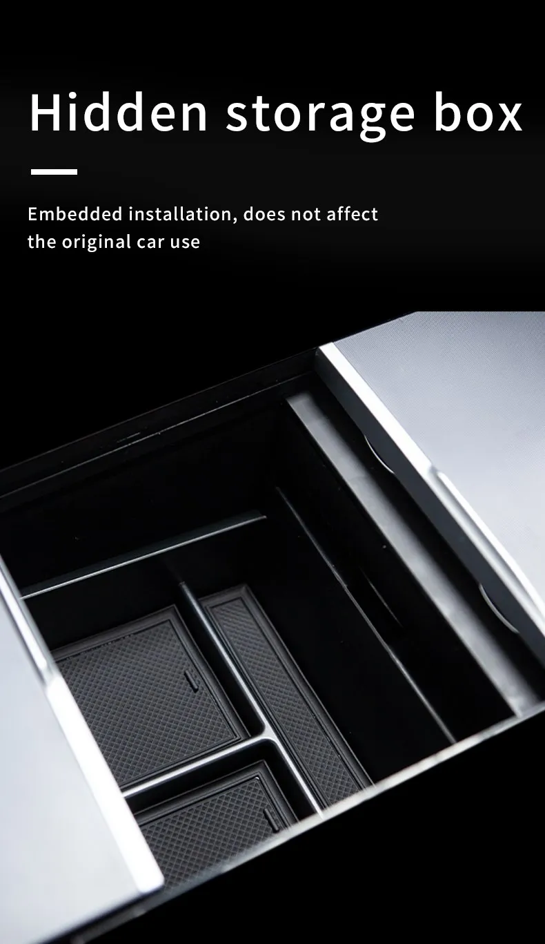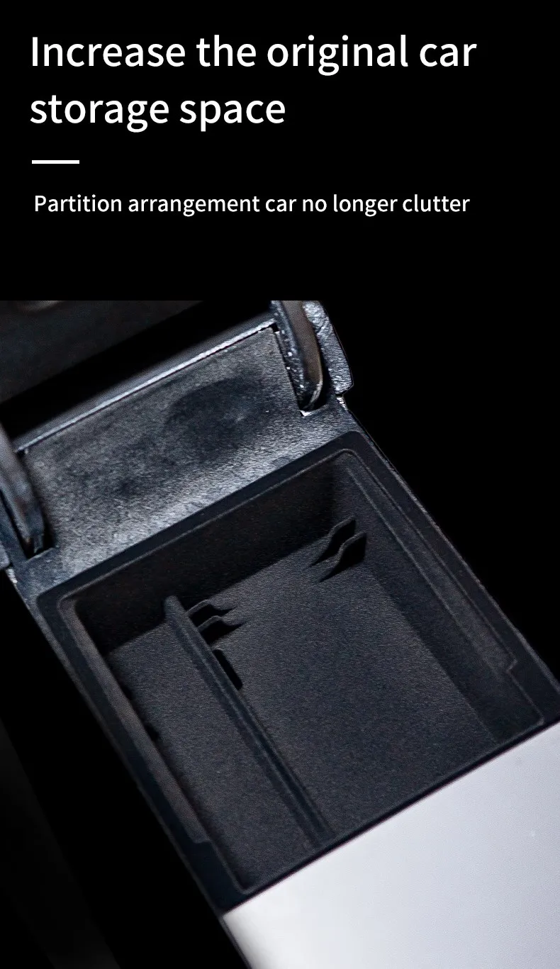 Upgrade For Tesla Model 3 Highland 2024 Central Armrest Storage Box Organizer Center Console Flocking ABS Tray Organizer